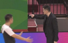 在比赛还剩0.04秒的时候,辽宁队被裁判吹罚在篮板后侧对对手犯规,送给对手两次罚篮机会。